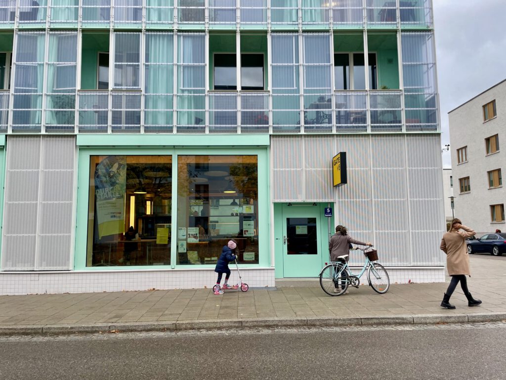 Mit zwei weiteren Genossenschaften (Wagnis, WOGENO) erhielt die KooGro ihren ersten Zuschlag für ein Grundstück in München Riem. Ein Neubauquartier, das die Nahversorgung in einer Shopping Mall konzentriert – ein Grund dafür, dass es hier besonders schwer war Konzepte der vertikalen Nutzungsmischung umzusetzen. Es erforderte Geduld, Durchhaltevermögen und ein hohes Maß an Idealismus. Nachdem die KooGro die Arbeiterwohlfahrt im laufenden Planungsprozess ihr Interesse für die geplante Werkstatt im Erdgeschoss zurückzog, musste nach alternativen Erdgeschoss-Nutzungen gesucht werden. Mehrere Nutzungsvarianten wurden durchgespielt – Werkstätten mit Ladezone, Musikräume, studentische Wohnformen. Durch eine Werbekampagne konnte schließlich die heutige Nutzerin, eine Stiftung für Kinder- und Jugendhilfe als Mieterin für die Räumlichkeiten im Erdgeschoss gefunden werden.